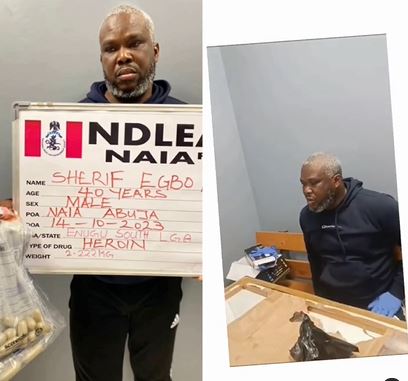 A statement released by Femi Babafemi, spokesperson of the anti-drug agency says Egbo was arrested on Saturday 14th October after a body scanner revealed he had wraps of illicit drugs in his stomach.