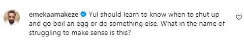 Reacting to the video, Emeka told Yul to know when to shut up.