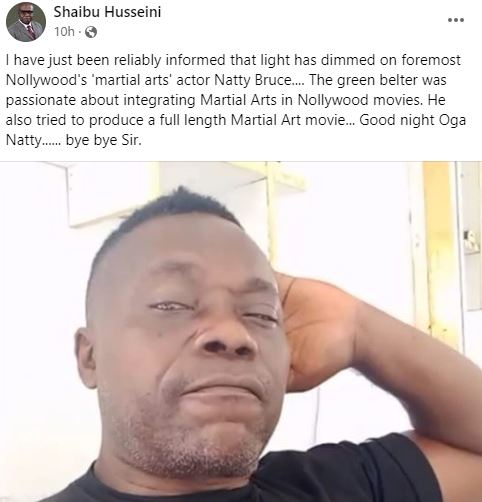 Popular Nigerian actor, Natty Bruce Idigbogu, has passed on. His demise was announced in social media by lecturer and journalist, Shaibu Husseini.
