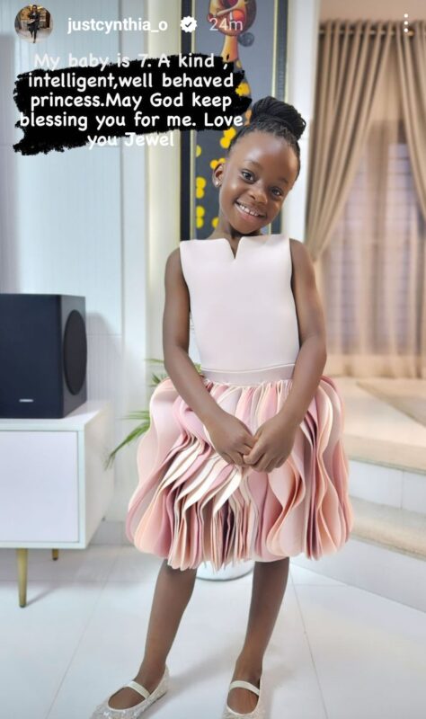“My baby is 7: A kind intelligent,well behaved princess. May God keep blessing you for me. Love! you Jewel” she wrote.
