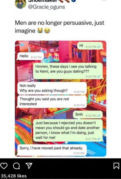 A lady identified as Grace has taken to social media to express displeasure after she found out that a man who has been asking her out has now shifted his attention to another woman.