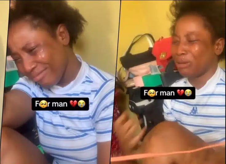 The lady was seen crying her heart out in a video which surfaced on social media as she continued to lament her woes to her friends who were in the room with her.