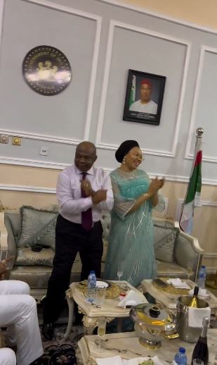 A video has captured the moment Imo State Governor, Hope Uzodinma and his wife, Chioma, were celebrating his re-election.
