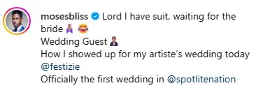 Recall that the musician made headlines last week following a controversial scene that played out at the wedding of the popular Nollywood actress, Ekene Umenwa, where she knelt before him right in the presence of her husband.
