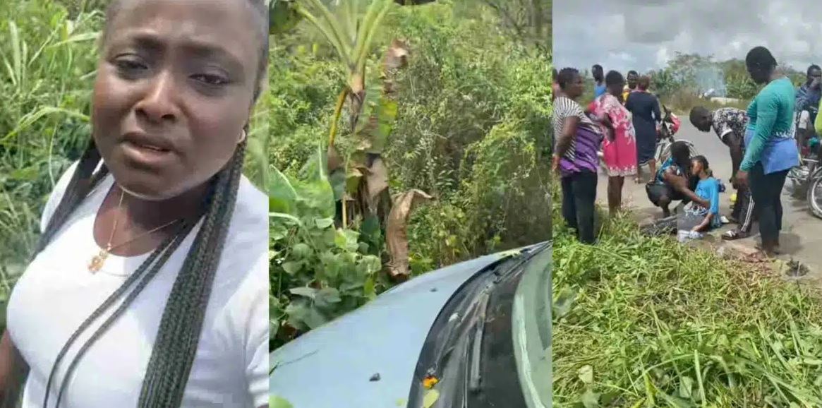 A serving member of the Nigerian Youths Service Corps, NYSC has taken to social media to appreciate God for protecting her and other passengers after their car almost somersaulted into a river.