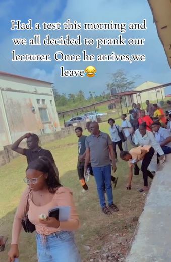 Going by the caption on the video, they had a test that morning and had planned among themselves to prank their lecturer.
