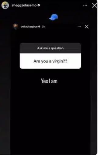 In responding to the fan, Bella said ''yes I am''. However, her boyfriend Sheggz reposted the answer from Bella’s Instagram and captioned it with a blue cap emoji.