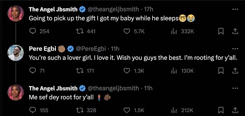 Pere Egbi also noted, “You’re such a lover girl. I love it. Wish you guys the best. I’m rooting for y’all.”