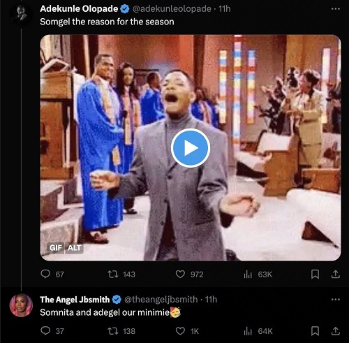 Adekunle Olopade joined in, “Somgel the reason for the season.”