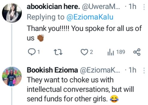"I am very much materialistic and I like the soft life. Do you know the prices of books? Exactly,” she wrote on Twitter