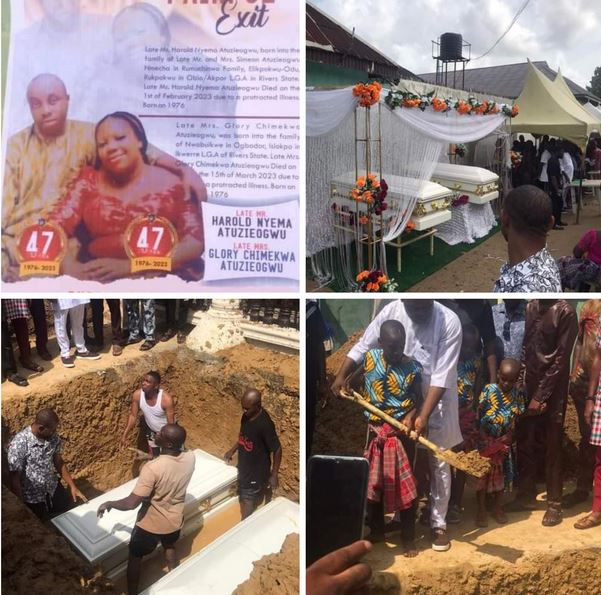 A couple, Harold and Glory Atuzieogwu, who passed away six weeks apart have been buried amid tears in Obio/Akpor Local Government Area of Rivers State.