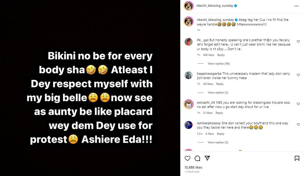 In an Instagram post, Nkechi said that wearing bikini is not for everybody.