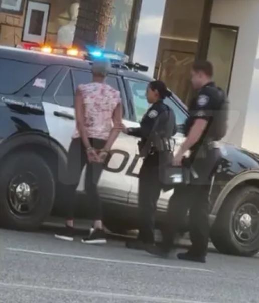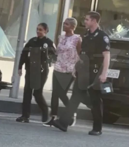 In a video obtained by TMZ, the actress could be with her hands behind her back and cuffed as she is escorted to a patrol car.
