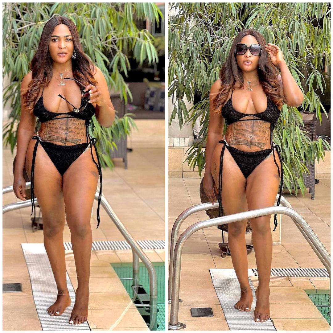 She posted her own bikini photos in what appeared to be a challenge, gushing over her tattoos, which she claimed are elegant and sexy as opposed to Blessing CEO’s, which she finds tacky.