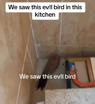 In the caption of the video, they wrote: “We saw this evil bird in this kitchen.”