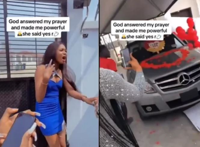 He proposed to her with her dream car, a Mercedes Benz, as engagement gift after she said ‘Yes’.