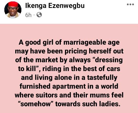 The banker who stated this on Facebook on Wednesday, urged mothers of Anambra ladies that are single to advise their daughters to live a modest life in order to attract responsible husbands.