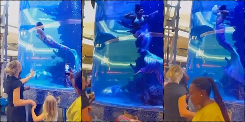 A video has surfaced online showing the moment a professional mermaid in South Africa nearly drowned in an aquarium tank.