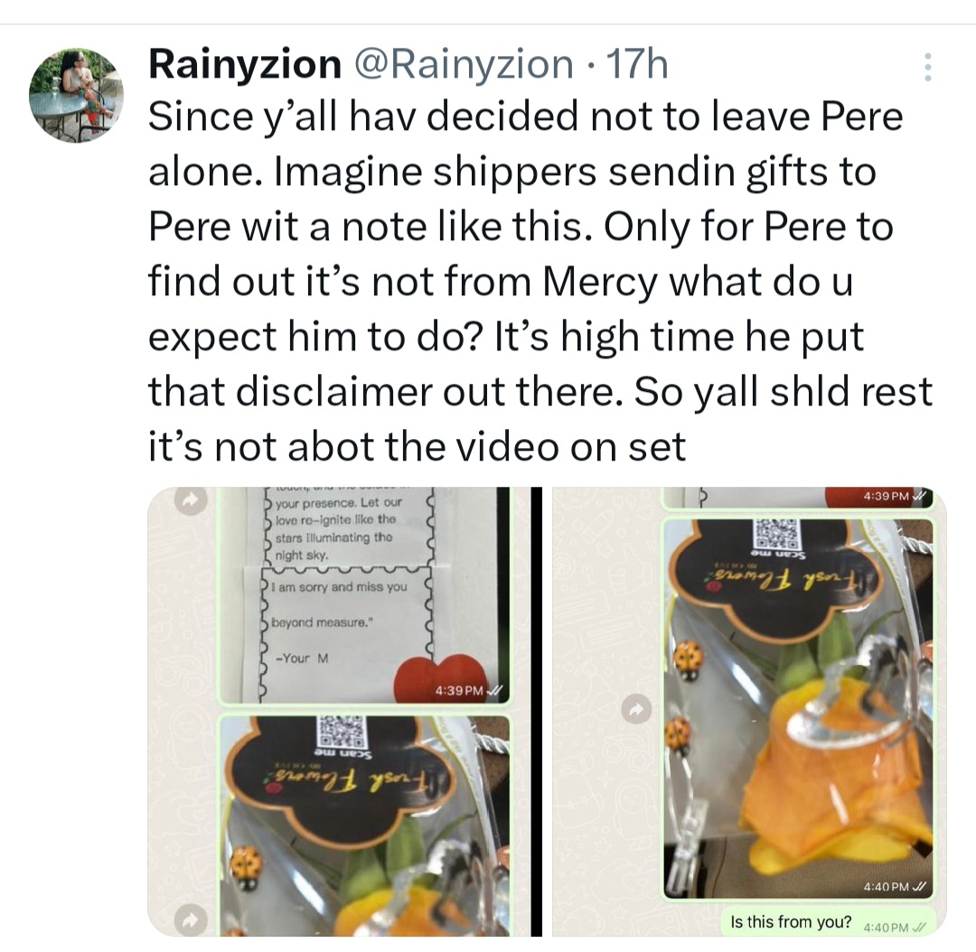 This Is Not From Me - Mercy Says After Pere Got A Love Note And Flower Signed From 'Your M'