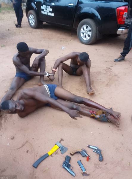 Three suspected armed robbers terrorizing the Otukpo/Enugu federal highway have been arrested by the Benue State Community Volunteer Guards.