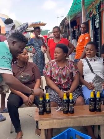 In the video, a young man can be seen informing a group of ladies that whoever drinks three bottles of drink in time will win ₦10,000.