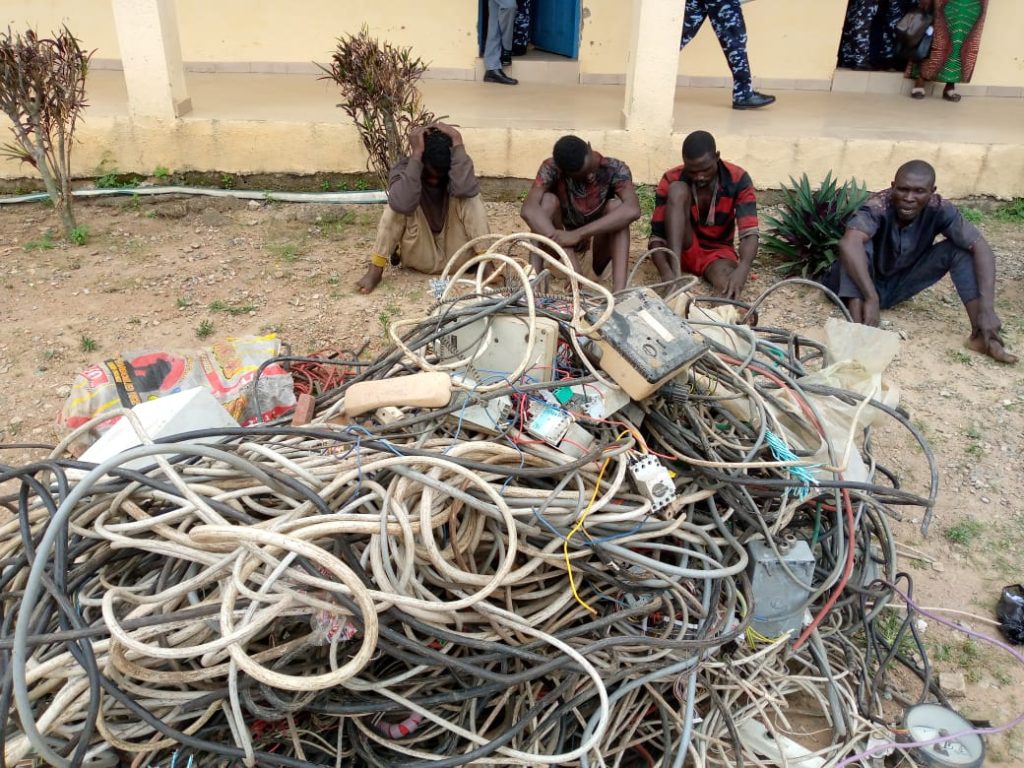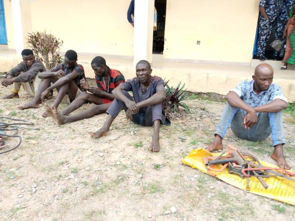 Paraded for conspiracy, stealing and vandalisation are; Abass Adam, male, 40 years, Ganiyu Sakiru, male, aged 25 years, Wahab Idowu, male, 47 years of age, Ibrahim Amodu, male, 26 years of age, Sikiru Ayomide, male, aged 20 and Haruna Quadri, male, aged 32 years.