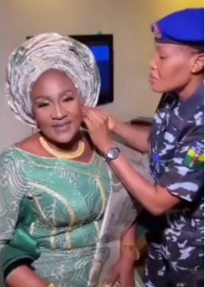 Some Nigerians on social media have begun to react a video emerged online showing a policewoman helping the Osun First Lady, Titilayo Adeleke to wear her earring.