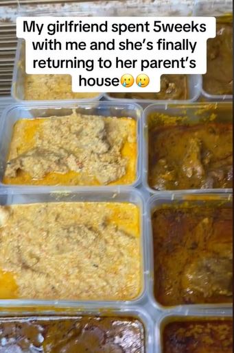 A Nigerian man has taken to TikTok to share a video of the mouthwatering soups and stew prepared by his girlfriend after she came to stay with him for 5 weeks.