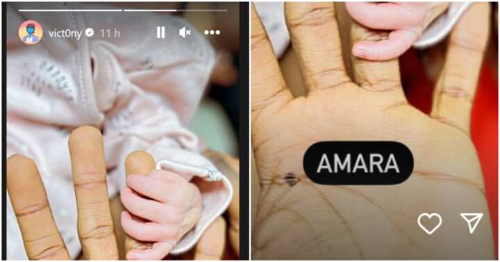 He also took to his social media page to share a tender photograph of the baby’s hand holding onto his hand.