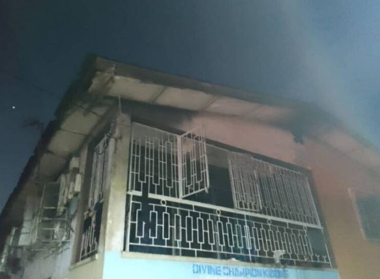 There was a fire outbreak on Monday morning at a building located at number 49, Ogunjebe Street, Adealu Bus Stop, Dopemu-Agege, area of Lagos State.