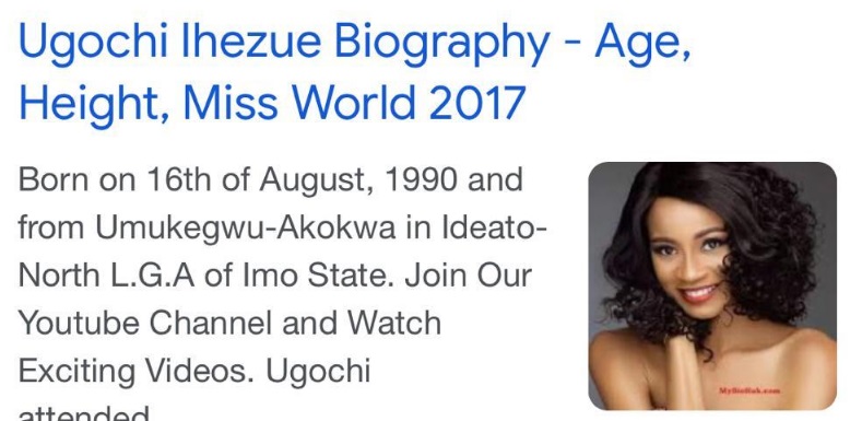 When she represented Nigeria in the 72nd Miss Universe pageant the MC announced her age as 27. However, reports from some quarters peg her age at 33, claiming she was born in 1990.