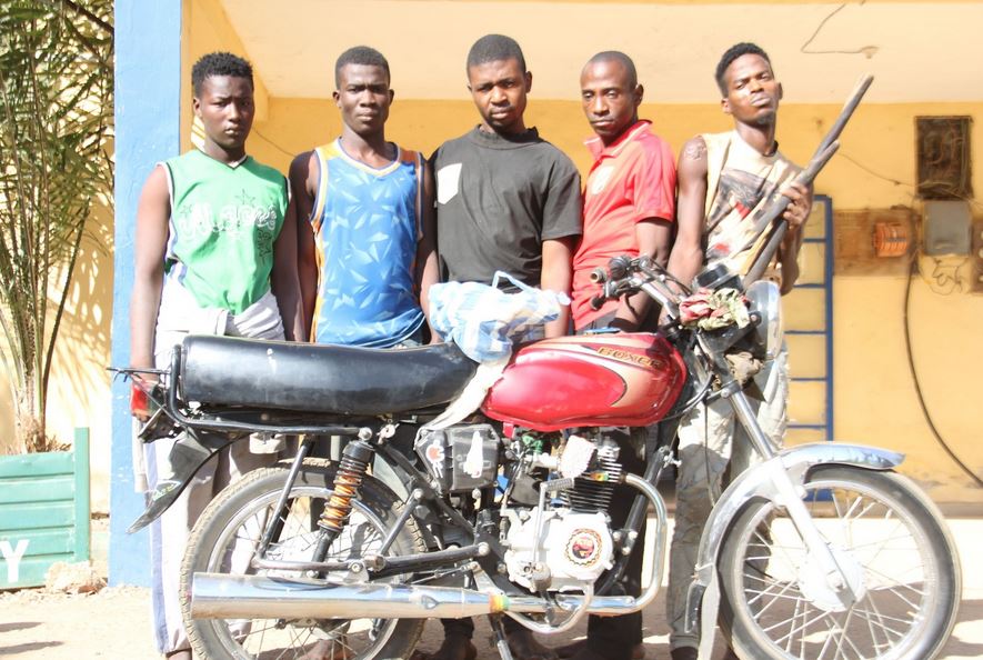 "The suspects arrested include: Umar Saidu 'm' aka Popo 20yrs old; Florence Jeremiah 'f' 18yrs; Sani Abdullahi 'm' aka Bamba 27yrs; Bello Adamu 'm' aka Omata 19yrs; Adamu Musa 'm' aka Mai-anguwa, 25yrs, all of Yelwan Kagadama area," the statement read.