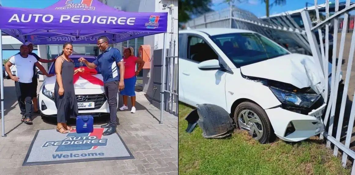 The moment a South African woman crashed her brand new car in front of the dealer shop where she purchased it has been captured on CCTV.