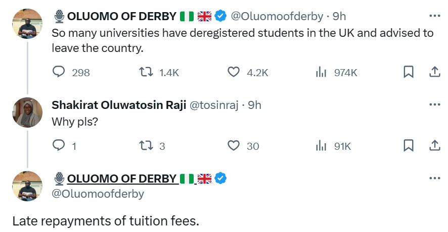 A Nigerian man has taken to 'X' to disclose that some Nigerian students have been deregistered by some universities in the United Kingdom.