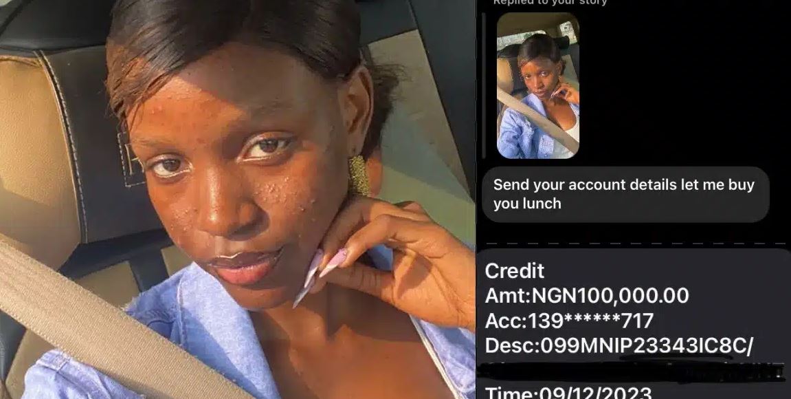 A Nigerian lady has been gifted the sum of N100K from a stranger who found her beautiful.