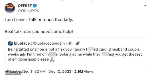 Offset has reacted to allegations that he slept with Chrisean Rock, the babymama of rapper Blueface.