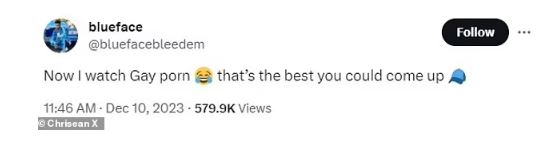 Blueface replied, 'Now I watch Gay porn ... that’s the best you could come up.'