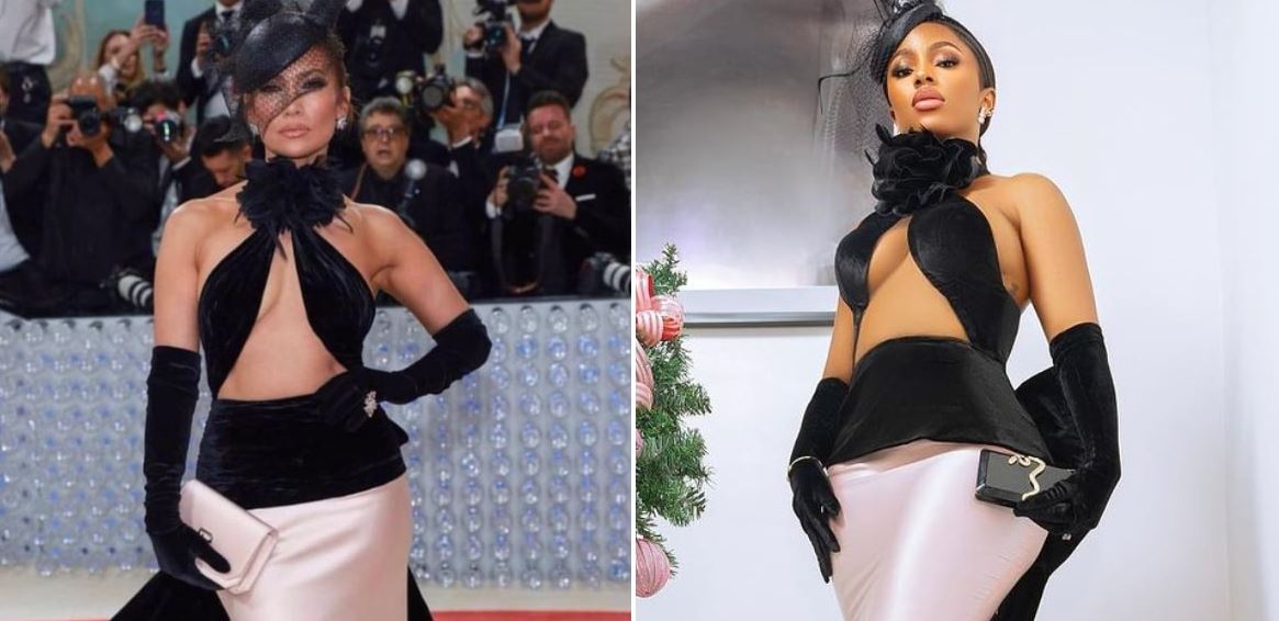 Ex-BBNaija housemate, Mercy Eke recreated the outfit worn by American singer and actress, Jennifer Lopez, to an event last night.