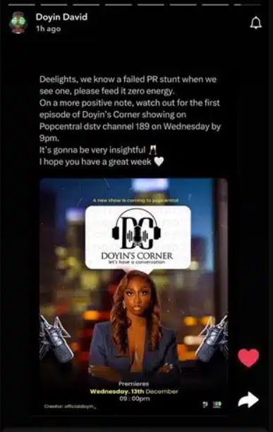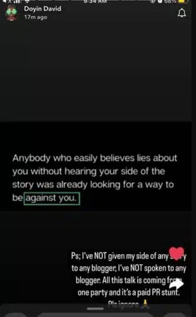 However, Doyin has shot down the allegations of the blogger, Cutie Juls saying that every story posted in connection to the video brouhaha is a PR stunt and must be ignored.