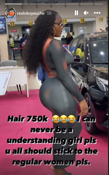 “Hair 750K I can never be a understanding girlfriend pls u all should stick to the regular women pls.”