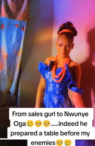 A Nigerian lady has taken to TikTok to celebrate as she got upgraded from a sales girl to the wife of her employer.