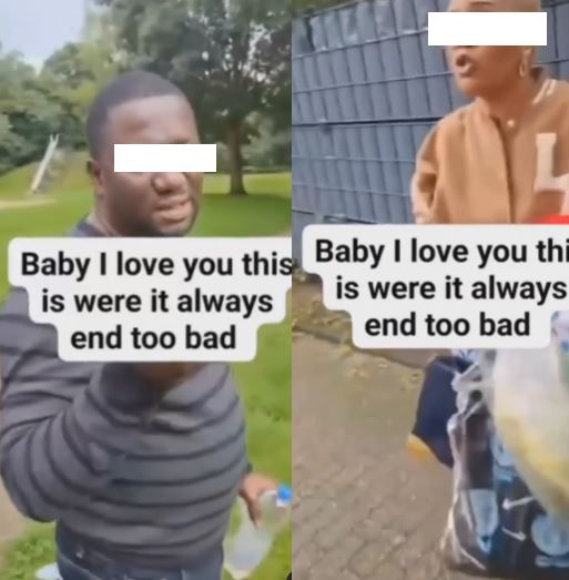 A video has captured the moment a Nigerian man confronted his wife after he saw her with another man in Europe.
