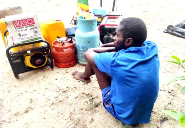 Some of the items recovered from the suspect included two black standing fans, two kegs of 25 litres of groundnut oil, cooking utensils, three power generating sets, one electric cooker, two gas cookers, one ring light, half bag of rice, one 12kg gas cylinder, one 6kg gas cylinder and one 3kg gas cylinder.