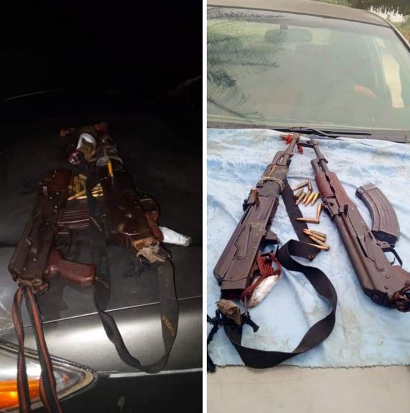 "During the search of the vehicle, two (02) AK47 riffles with thirteen (13) rounds of 7.62mm live ammunition were recovered concealed inside the vehicle engine compartment and in the trunk of the car. Exhibits in custody, and investigation have commenced as effort is being made to arrest the fleeing members of the gang.