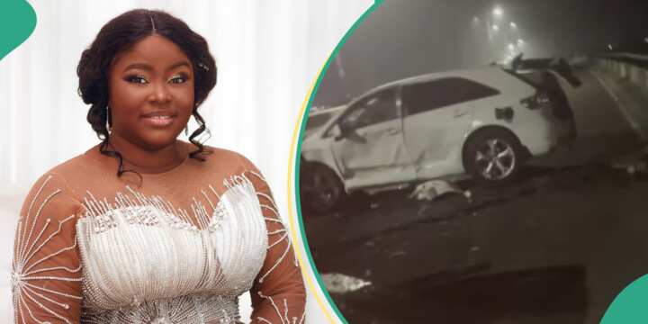 Arugba revealed the accident occurred on Lagos' Third Mainland bridge, where her car, a Venza, was left in a dismantled state.