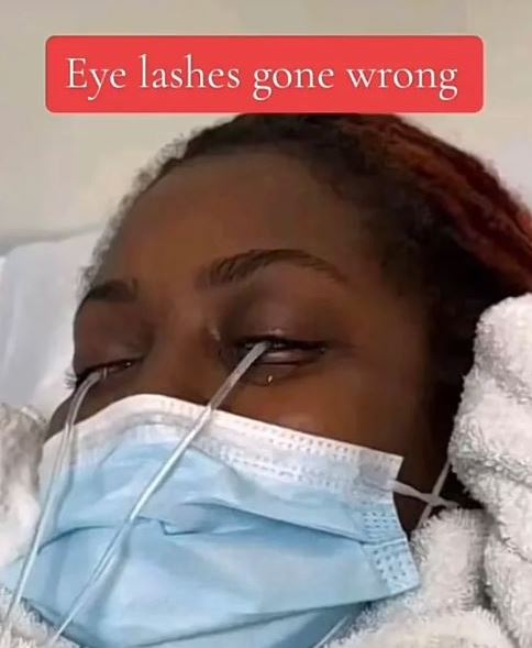 A young woman has garnered prayers from numerous social media users after she almost lost her eyesight due to eyelash extensions.