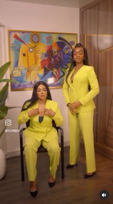 Priscilla posted a video of herself and the actress rocking matching outfits while striking different poses and dancing to Zlatan Ibile’s song, ''Jaboti''.