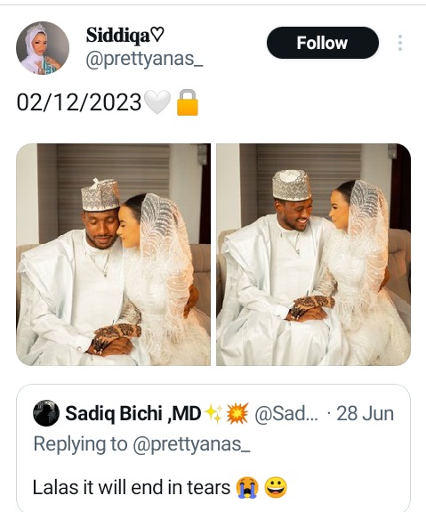 Siddiqa on Sunday, December 24, shared her wedding photos six months after one Sadiq Bichi said that her relationship will end in tears.