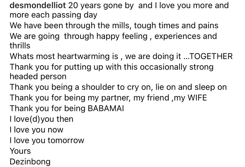 Desmond Elliott And Wife Celebrate 20th Wedding Anniversary (Photo)