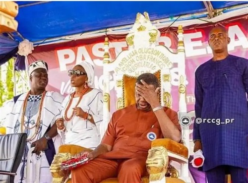 He said, “My attention has been drawn to different types of reactions to a photo circulating on social media where the G.O of RCCG, Pastor Adeboye sat on one of the palace chairs.